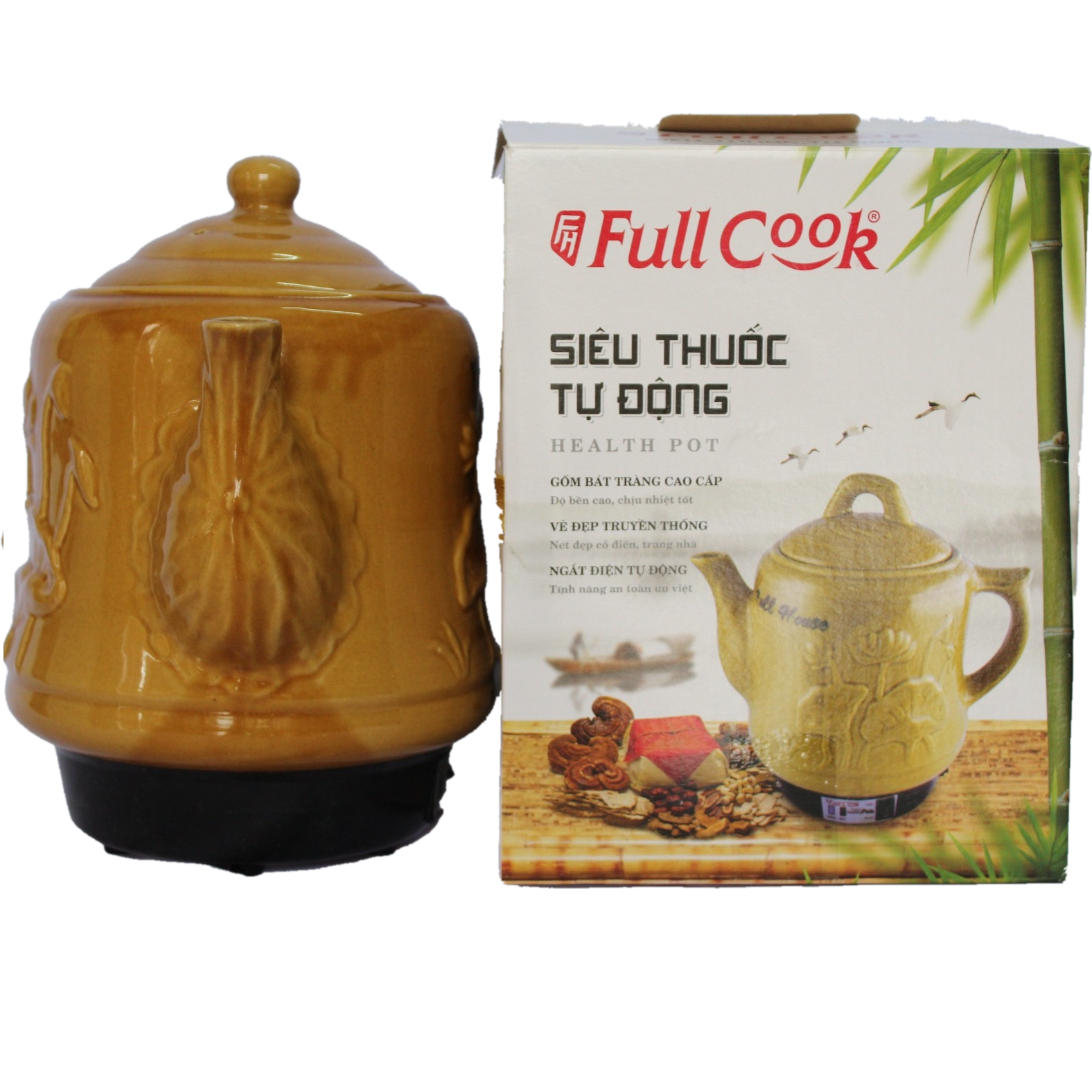 Ấm Siêu Sắc Thuốc Điện Tự Động Gốm Bát Tràng Full Cook FH-BT32 (3,2 lít) - Màu Ngẫu Nhiên - Hàng Chính Hãng với 2 chế độ nấu thuốc nhanh hoặc chậm rất tiện dụng cho người đùng