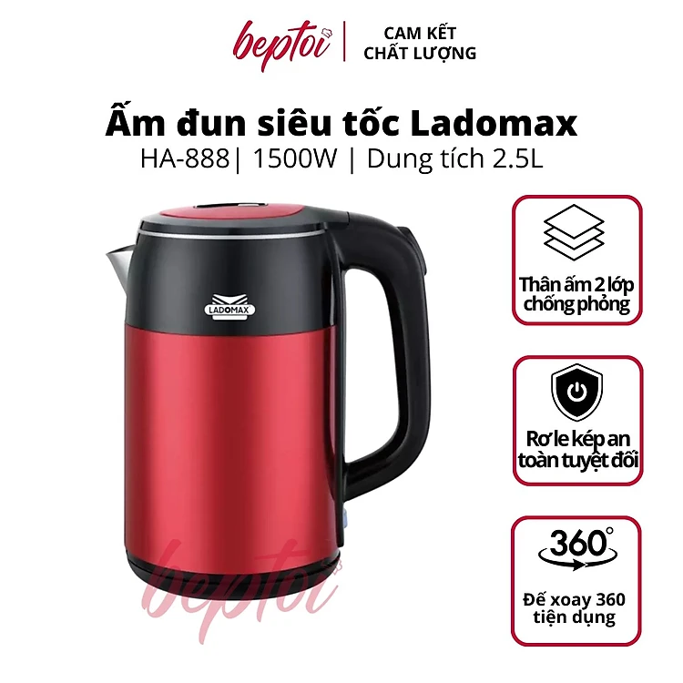 Ấm siêu tốc, bình đun nước siêu nhanh Inox 2 lớp chống phỏng Ladomax HA-888 2.5L - Hàng chính hãng