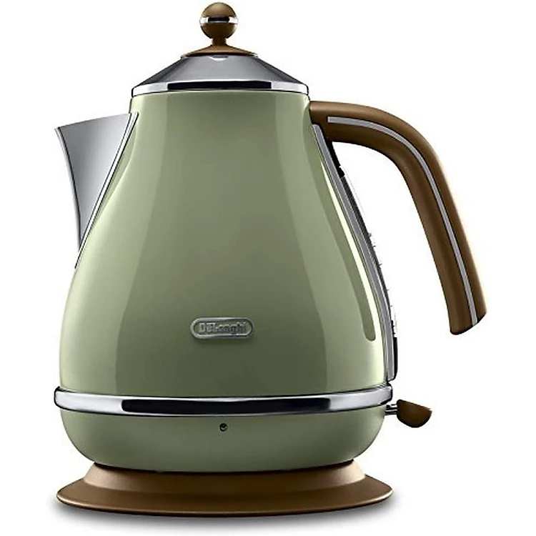 Ấm Siêu Tốc DeLonghi KBOV2001.GR 1.7Ló thiết kế đẹp mắt và mới lạ so với những sản phẩm trước đây, thay vì ưa chuộng màu sắc hiện đại, sang trọng thì với ấm siêu tốc bạn có thể thấy được sự cổ điển bên trong lối thiết kế này. Với màu ô liu chủ đạo khiến người dùng có thể cảm nhận được sự vintage cũng như vẻ đẹp quyến rũ của đất nước Ý thông qua ấm siêu tốc. Ấm siêu tốc được làm bằng thép không gỉ bên trong lòng ấm, chất liệu này nhằm đảm bảo được sự bền bỉ của sản phẩm và dẫn nhiệt nhanh, giúp thời gian đun nước của bạn được rút ngắn và tiết kiệm nhanh chóng.