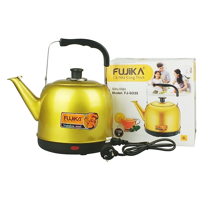 Ấm siêu tốc Fujika dung tích 4L đến 5L thân ấm inox phun sơn tĩnh điện chịu nhiệt, công suất 1500W, Màu ngẫu nhiên-hàng chính hãng