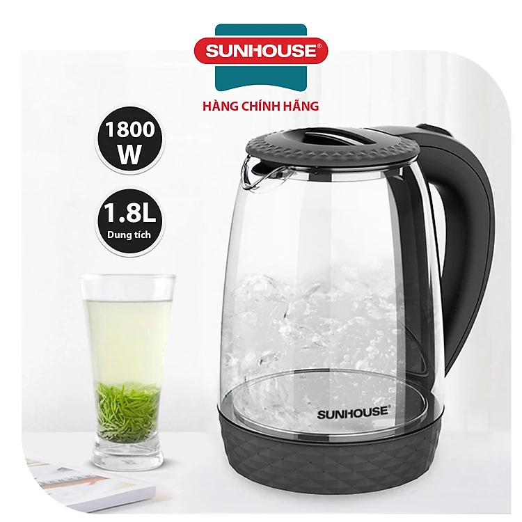 Ấm Siêu Tốc Thủy Tinh Sunhouse SHD1215B (Đen) - Hàng Chính Hãng
