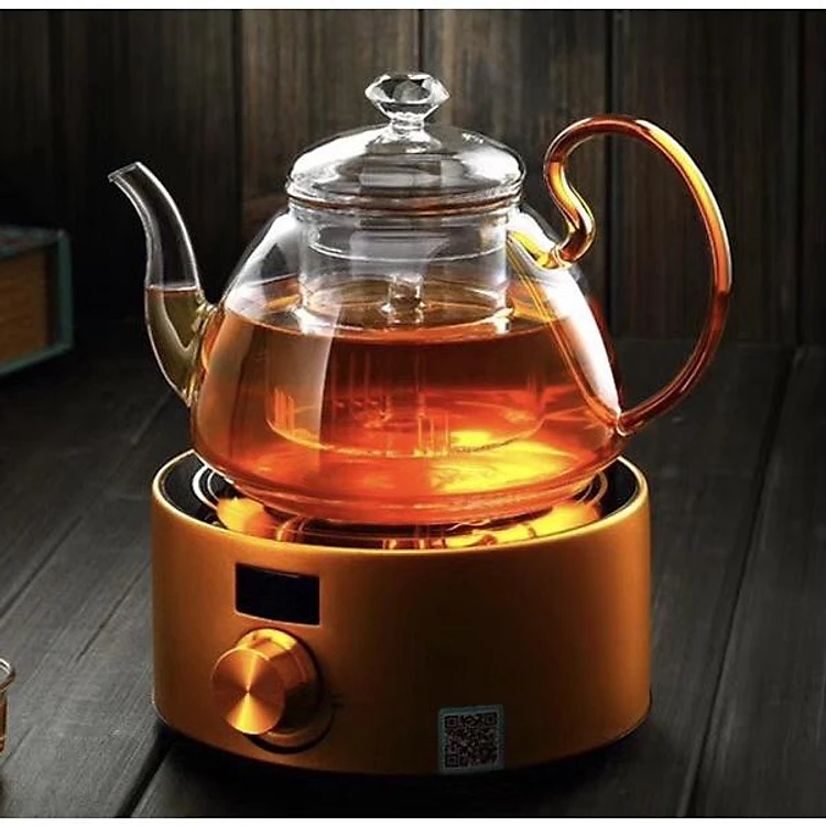 Ấm pha trà thuỷ tinh lõi lọc quai ánh vàng1000ml