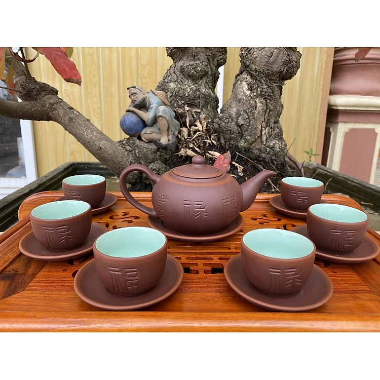 Ấm Trà Tử Sa Tống Nâu PLT lòng xanh