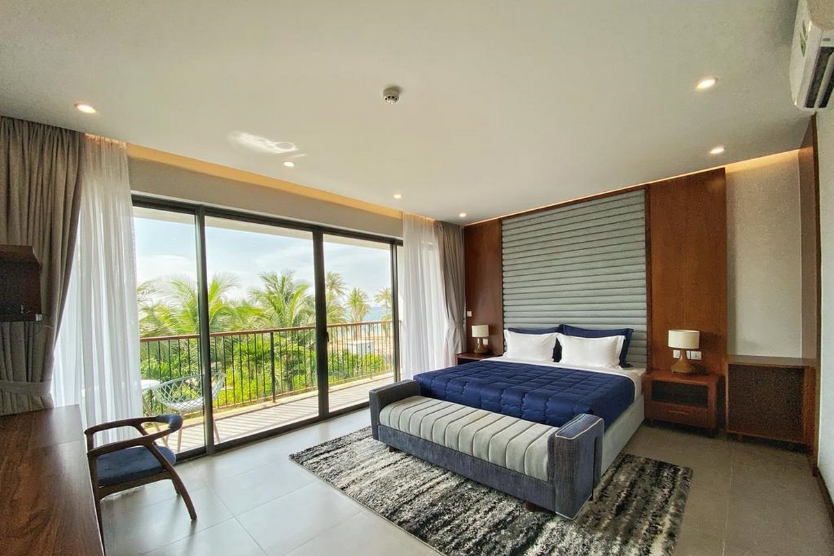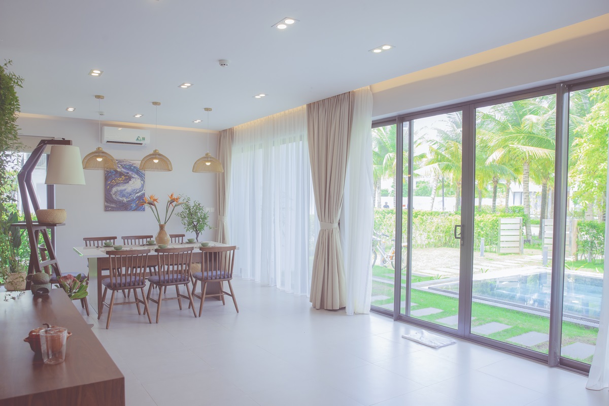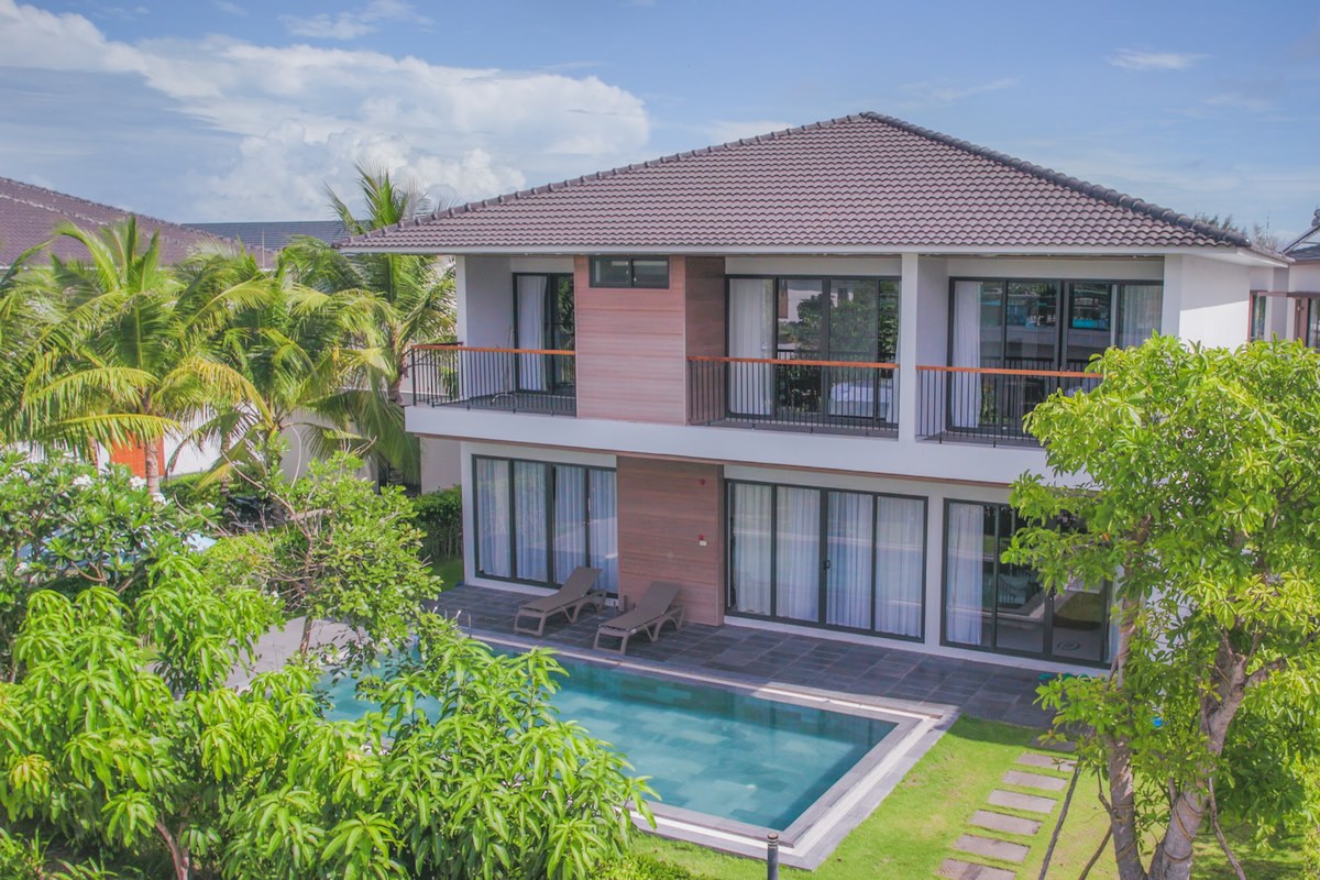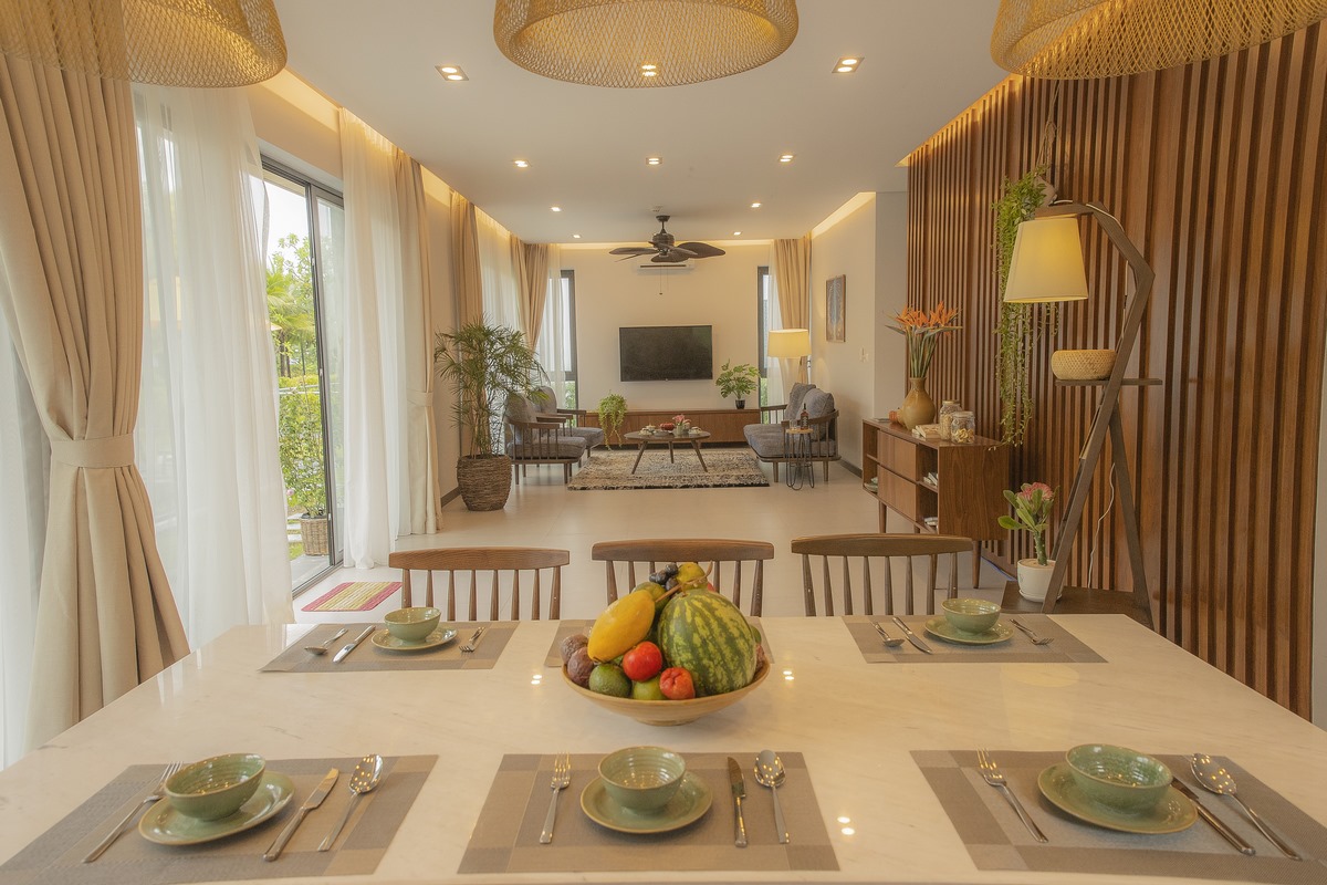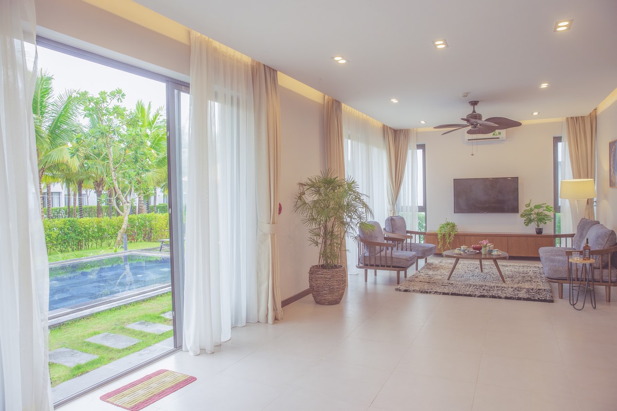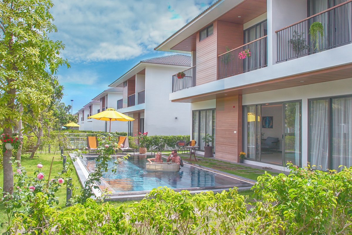Biệt thự 3 phòng ngủ: Có diện tích 308m2 hướng vườn, bao gồm 3 phòng ngủ, 1 phòng khách và khu vực nấu ăn và hồ bơi riêng. Biệt thự dành cho 6 người, bên trong mỗi phòng ngủ có kê 1 giường đôi hoặc 02 giường đơn. Phòng tắm riêng với bồn tắm nằm. Tiện nghi phòng nổi bật bao gồm điều hoà nhiệt độ, TV màn hình phẳng, bếp, lò vi sóng, minibar.
