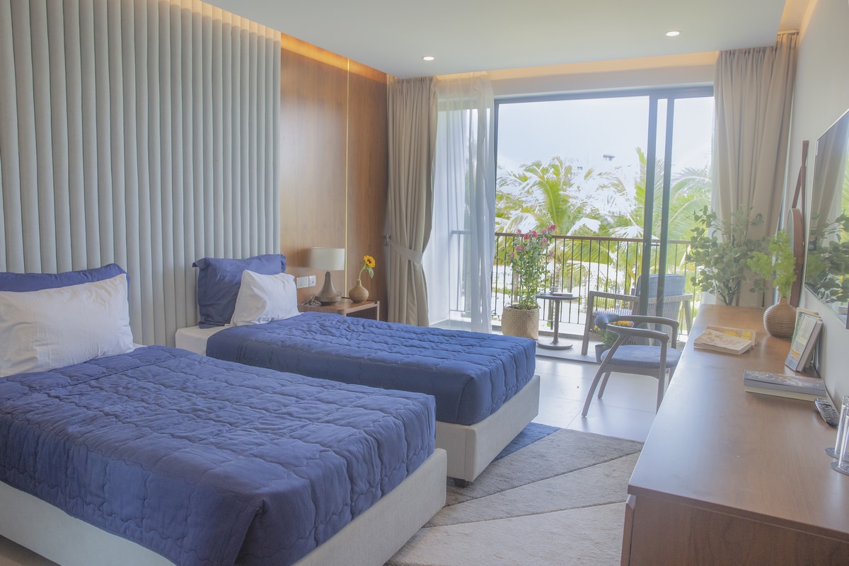 Biệt thự 2 phòng ngủ: Có diện tích 308m2 hướng vườn, bao gồm 2 phòng ngủ, 1 phòng khách và khu vực nấu ăn và hồ bơi riêng. Biệt thự dành cho 4 người, bên trong mỗi phòng ngủ có kê 1 giường đôi hoặc 02 giường đơn. Phòng tắm riêng với bồn tắm nằm. Tiện nghi phòng nổi bật bao gồm điều hoà nhiệt độ, TV màn hình phẳng, bếp, lò vi sóng, minibar.