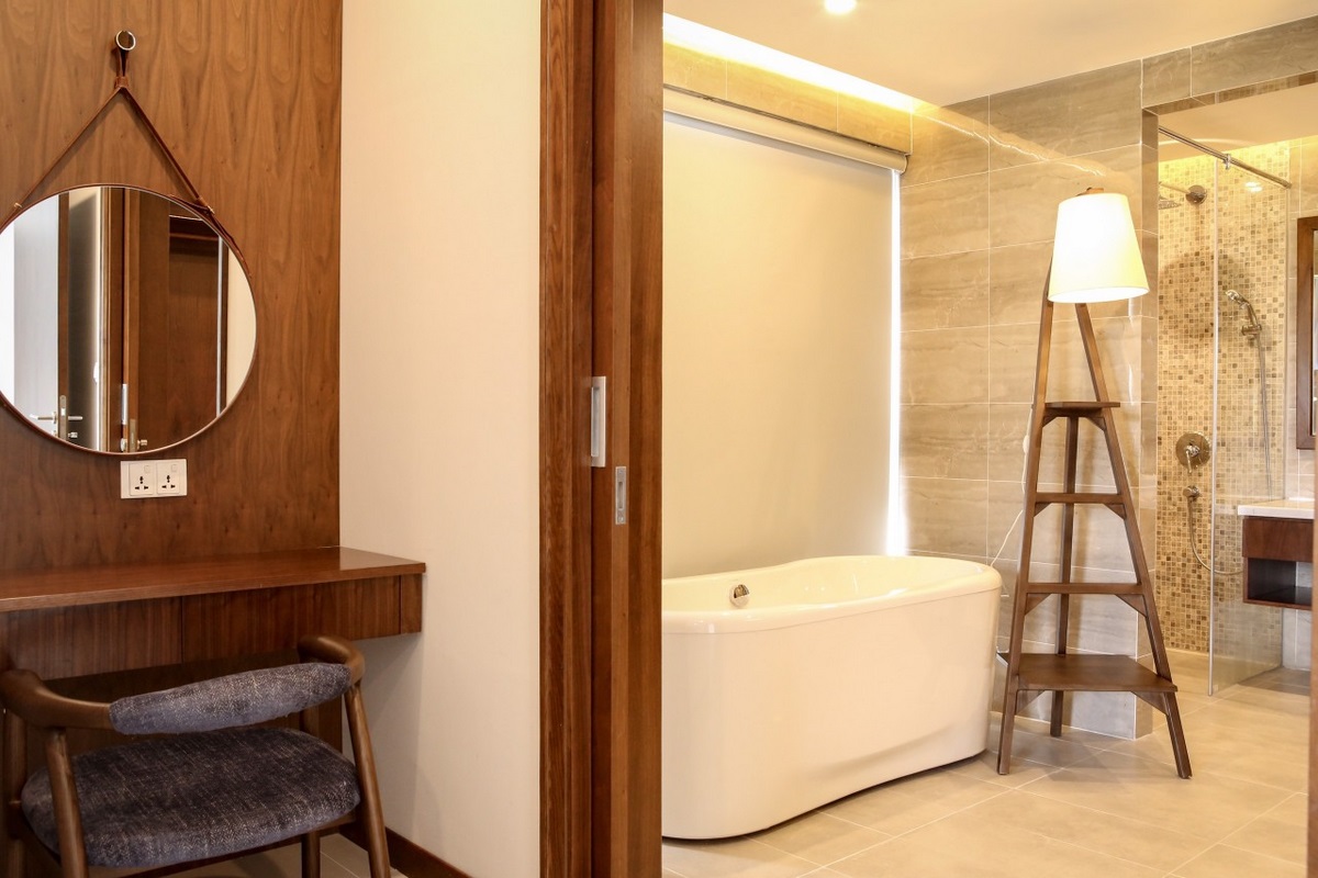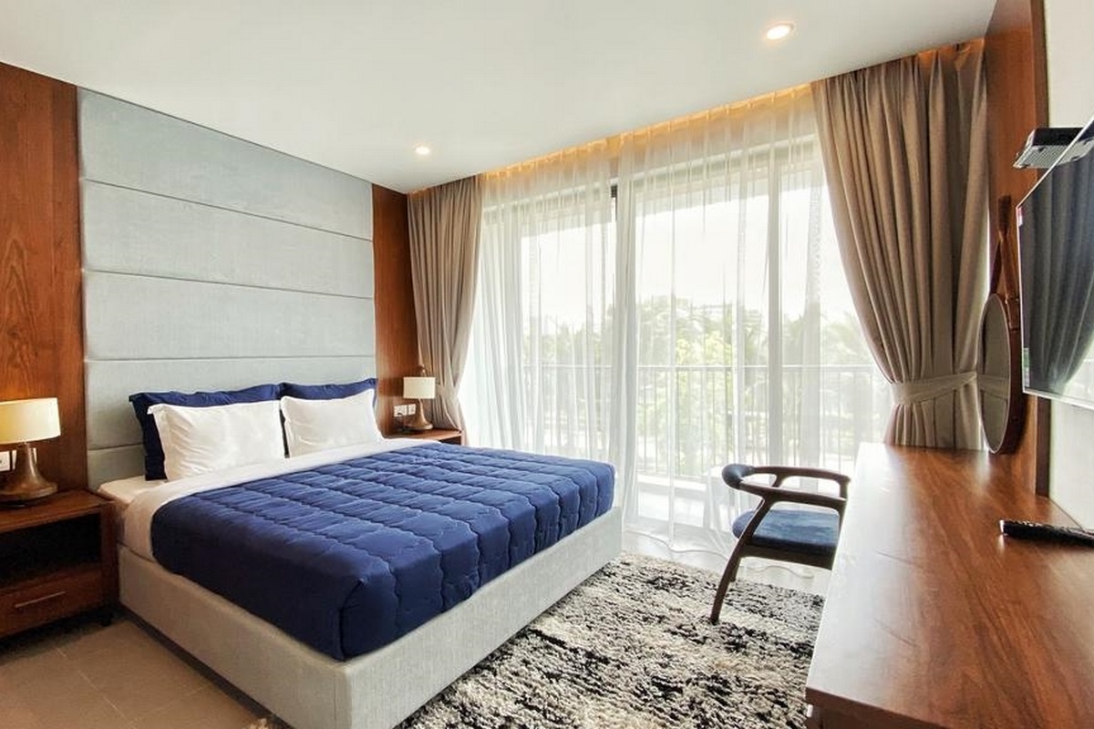 Biệt thự 4 phòng ngủ: Có diện tích 396m2 hướng vườn, bao gồm 4 phòng ngủ, 1 phòng khách và khu vực nấu ăn và hồ bơi riêng. Biệt thự dành cho 8 người, bên trong mỗi phòng ngủ có kê 1 giường đôi hoặc 02 giường đơn. Phòng tắm riêng với bồn tắm nằm. Tiện nghi phòng nổi bật bao gồm điều hoà nhiệt độ, TV màn hình phẳng, bếp, lò vi sóng, minibar.