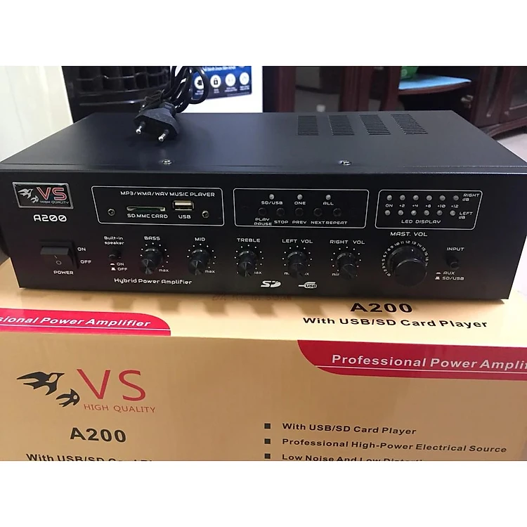 - Amply VS A200 thiết kế theo tiêu chuẩn chuyên nghiệp giúp cho chủ đầu tư tiết kiệm giá thành và điện năng, nhưng lại bền bỉ và phù hợp cho các nhà yến diện tích lớn.