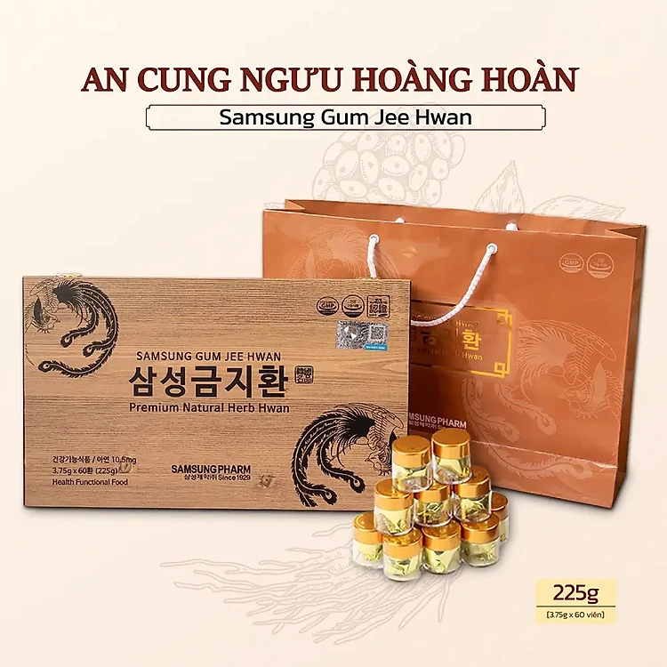 An Cung Ngưu Hoàng Hoàn Gum Jee Hwan Hộp Gỗ 60 Viên