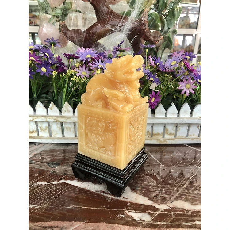 Ấn Kỳ Lân phong thủy đá ngọc hoàng long - Cao 15cm