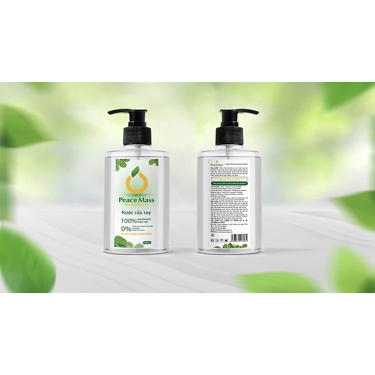 Nước rửa tay hữu cơ Peace Mass với thành phần dưỡng ẩm dịu nhẹ, vitamin B5 cùng chiết xuất trà xanh giúp làm làm sạch da tay, khử mùi, hỗ trợ ngăn ngừa vi khuẩn gây bệnh.