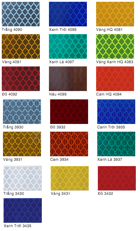 - Màng phản quang 3M series 3400 gồm các màu: Trắng, Xanh Blue, Vàng, Đỏ.