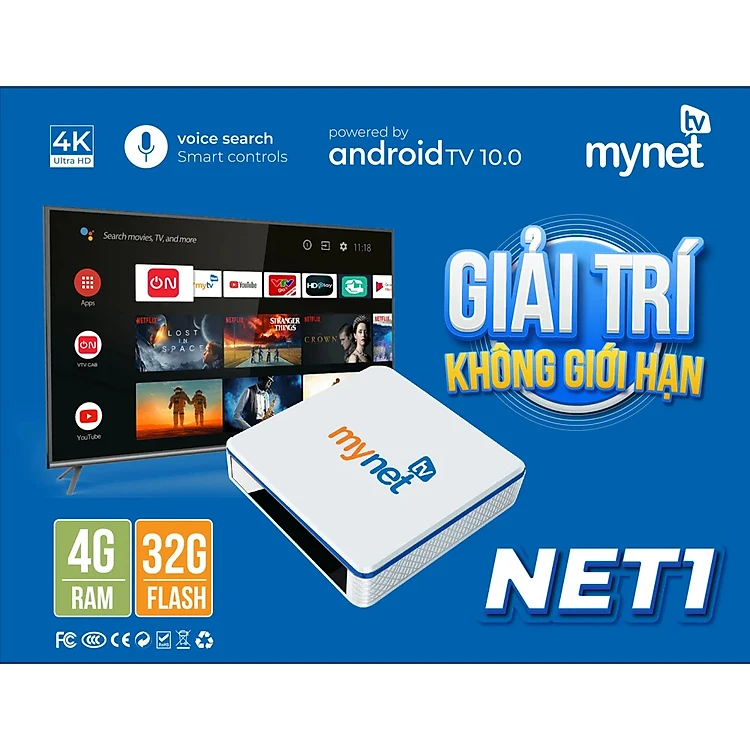 Android MyTV Net 4H Ram 4GB Rom 32GB New 2022 - Tích hợp điều khiển giọng nói, Android 10.0 cấu hình mạnh mẽ - Hàng chính hãng