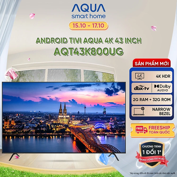 Android Tivi Aqua 43 inch AQT43K800UG - Hàng chính hãng - Bảo hành 1 đổi 1 trong 730 ngày đối với lỗi màn hình