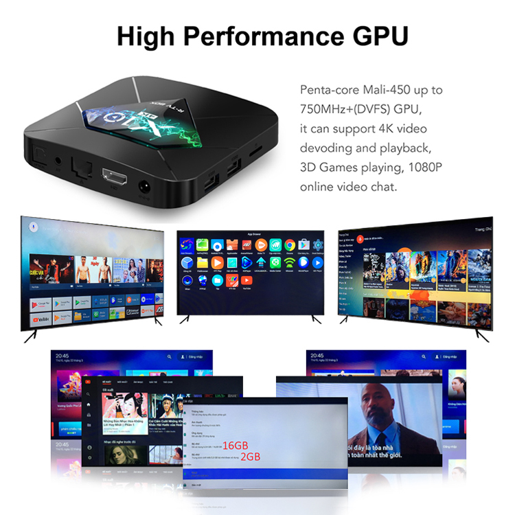 Android TV BOX RAM 2G, Bộ nhớ 16G, xem phim 4K, chơi game, hỗ trợ tính năng tìm kiếm bằng giọng nói mới nhất hiện nay X10
