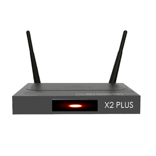 Phía trước ta sẽ có logo Vinabox, và đây cũng là vị trí đèn báo tín hiệu trạng thái hoạt động của thiết bị, bên cạnh đó là tên sản phẩm X2 Plus