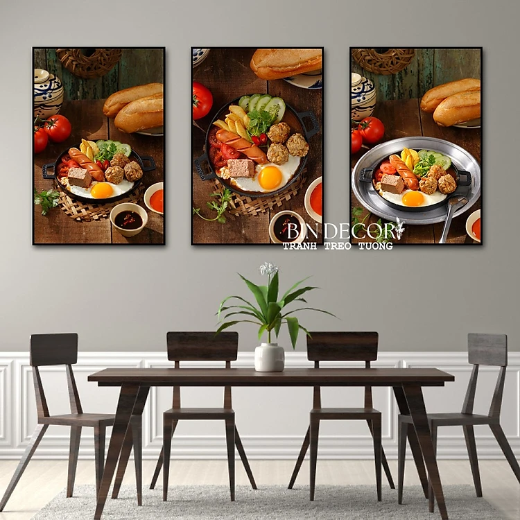 (ẢNH THẬT) Tranh treo tường bánh mì chảo 1 tráng gương trang trí decor quán kèm đinh treo