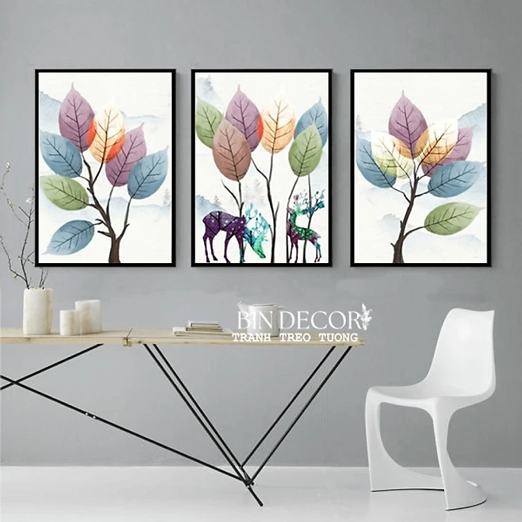 (ẢNH THẬT) Tranh treo tường lá sắc màu tranh trang trí decor kèm đinh treo