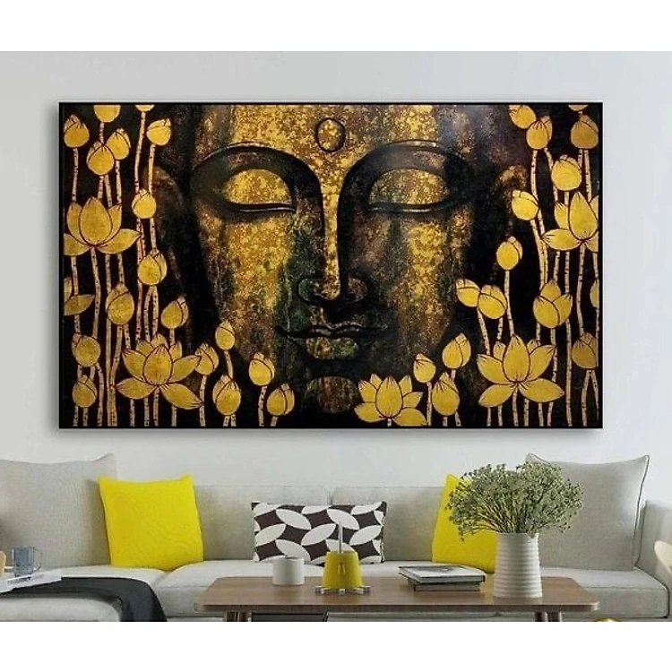 (ẢNH THẬT) Tranh treo tường phật trong hoa sen vàng tranh trang trí phòng thờ nơi tôn nghiêm