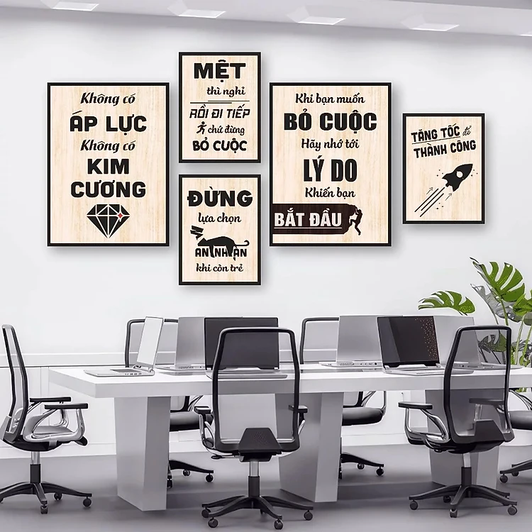 (ẢNH THẬT) Tranh treo tường văn phòng bộ 5 tấm có sẵn khung kèm đinh treo