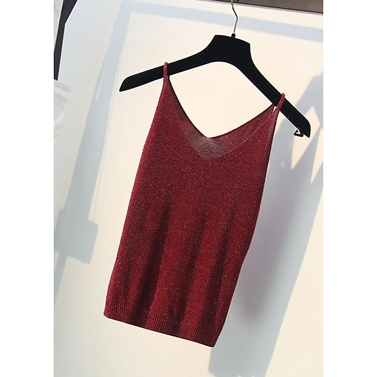 Áo 2 dây cổ V thon chất len lụa dệt kim tuyến mùa hè thoải mái HD01 Free size