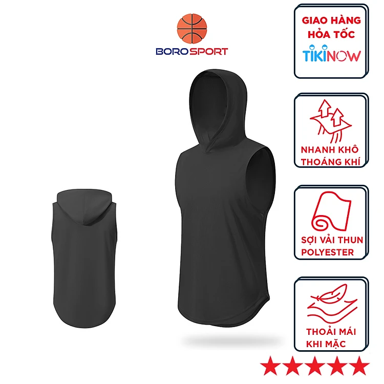 Áo ba lỗ có nón tanktop tập gym , chạy bộ bóng rổ thể thao đa năng Cleacco BX002 , chất vải Mè polyester cực nhanh khô , thoáng khí Bảo Hành 12 tháng - Boro Sport