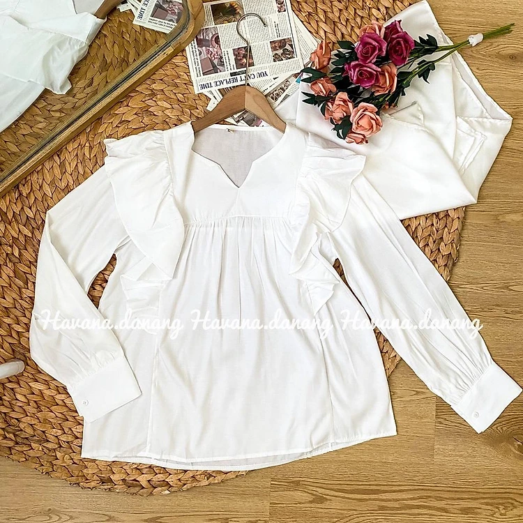 Áo babydoll bèo vai cổ tim, áo bèo dài tay