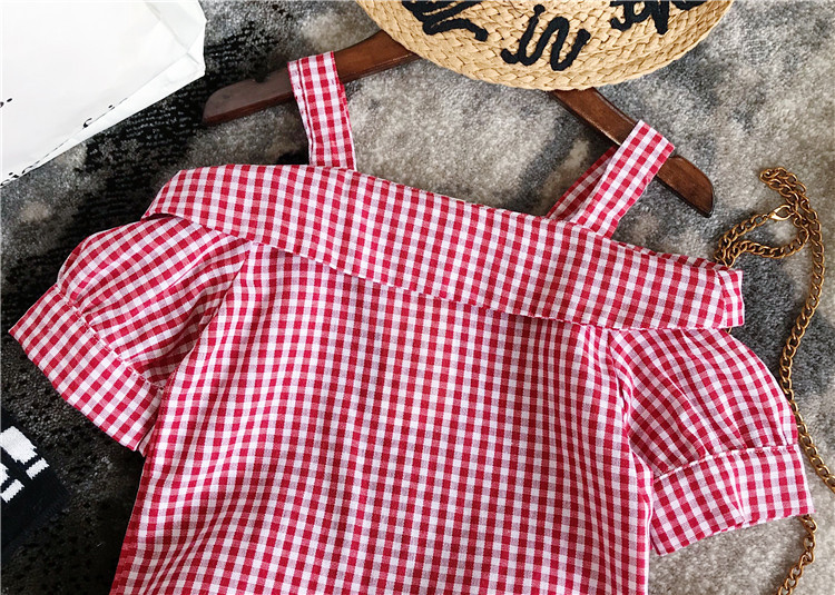 Áo thô caro dệt sợi thưa, thiết kế 2 dây cổ trễ cách điệu