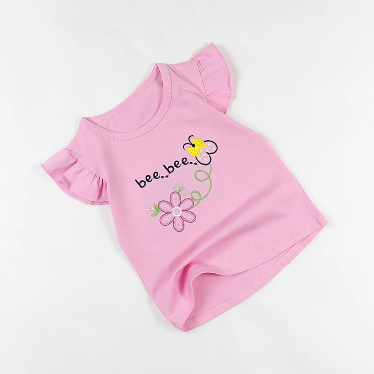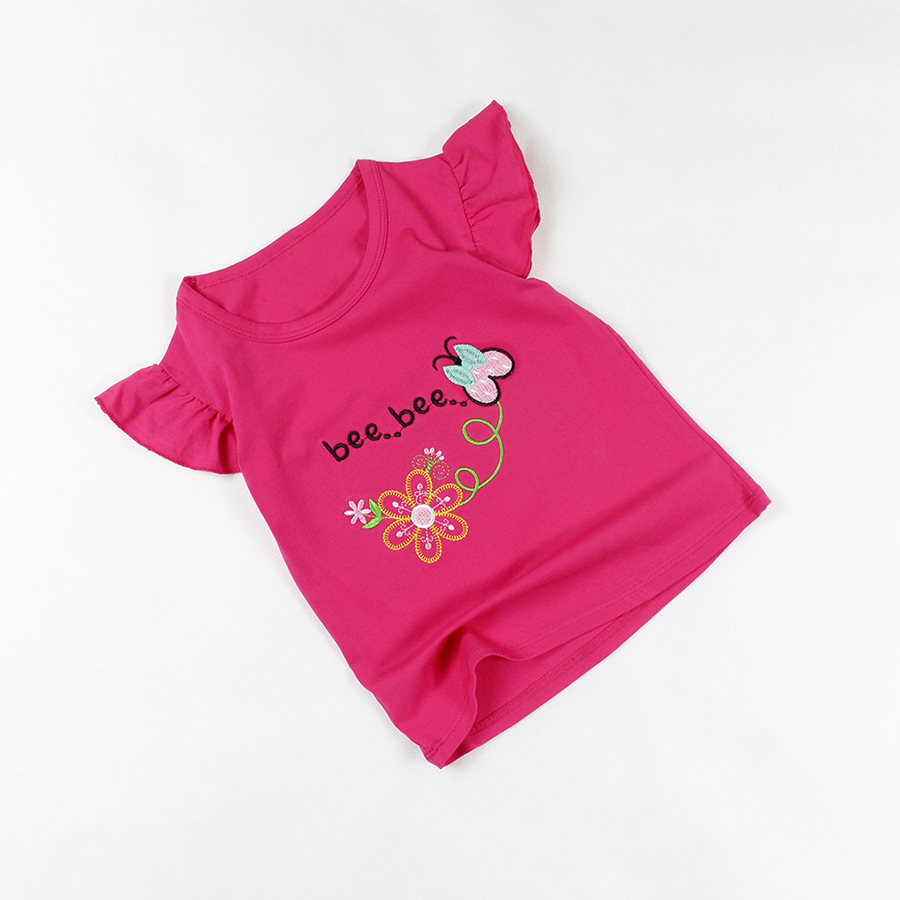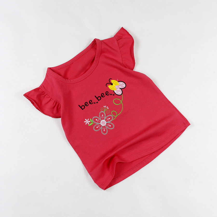 - Áo bé gái thêu hoa và bọ cánh cam cánh tiên cổ tròn cho bé gái 0.5-7 tuổi vải thun 100% cotton 4c.