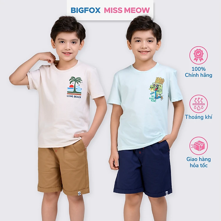 Áo bé trai Bigfox Miss Meow mùa hè chất cotton size đại cộc tay in đẹp cỡ 3,7,9,11 tuổi 30kg 40kg