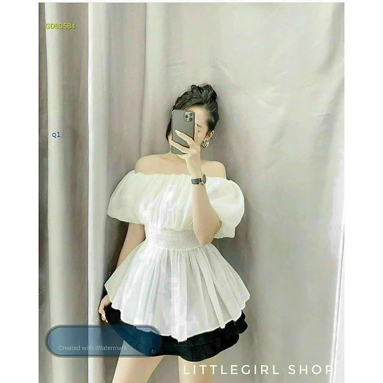 Áo bí peplum bẹt vai tay bồng dáng xòe ảnh thật