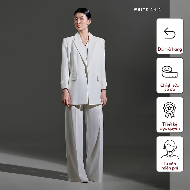 Áo blazer vai rộng, cổ 2 ve tay lỡ dài màu trắng TOVE thiết kế cao cấp WHITE CHIC