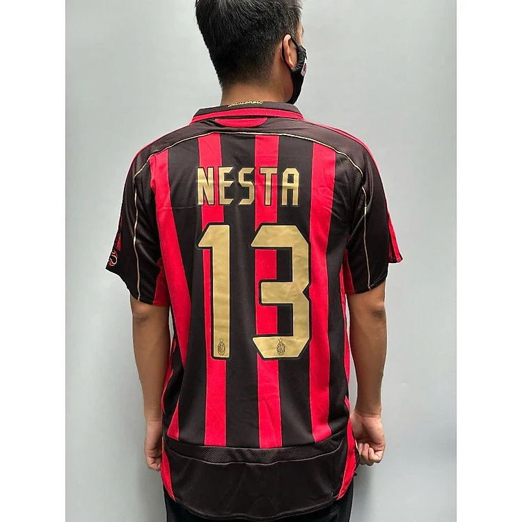 Áo Bóng Đá Retro AC Milan 2006 - Sân Nhà In Tên Nesta Số 13 bản cao cấp vải Cotton Polyester