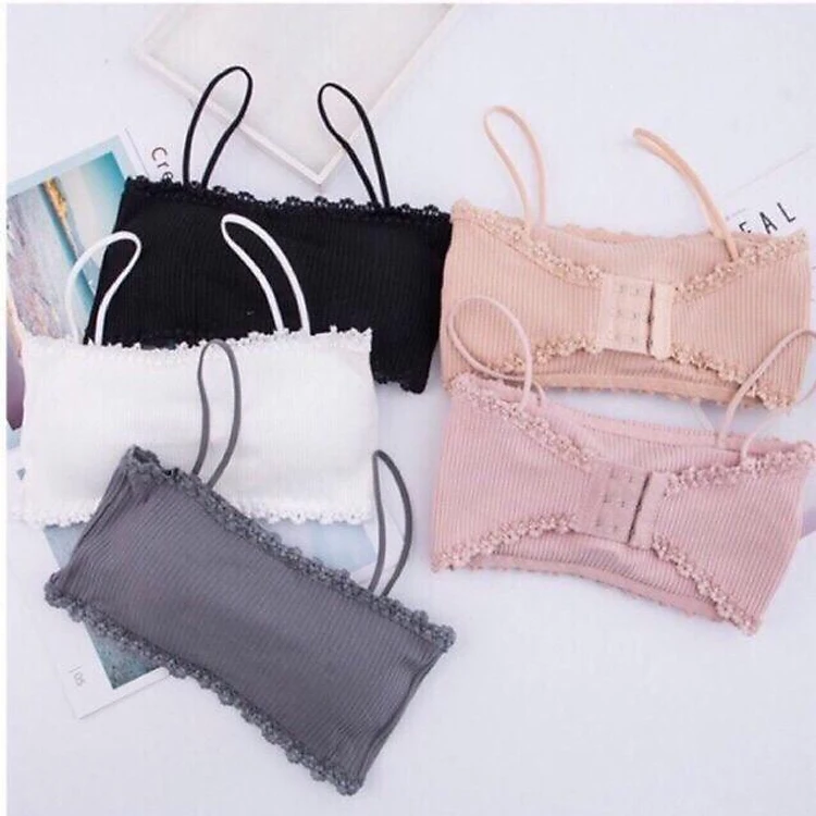 Áo Bra Cotton Tăm Phối Ren Viền Cài Sau Siêu Mềm