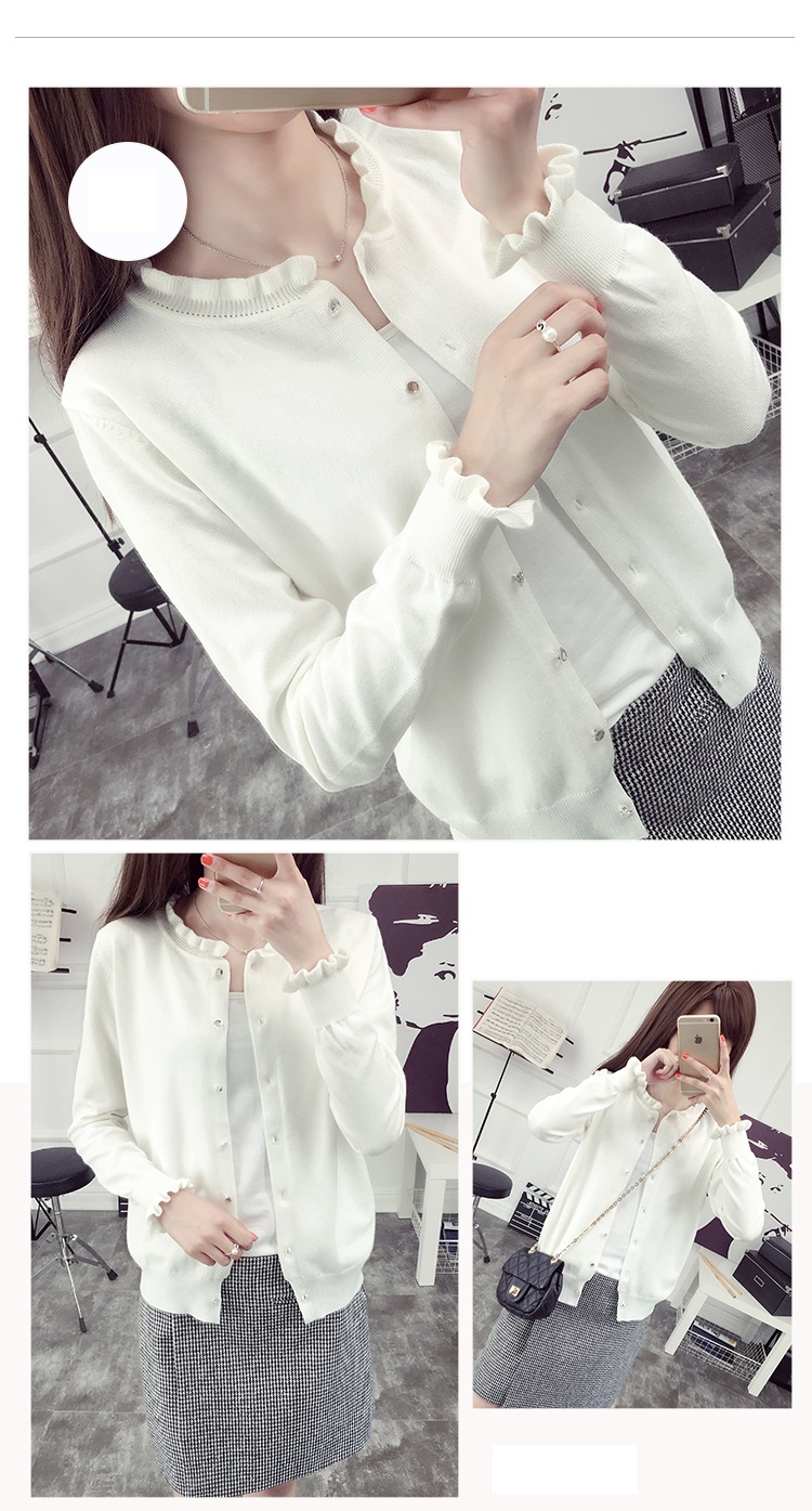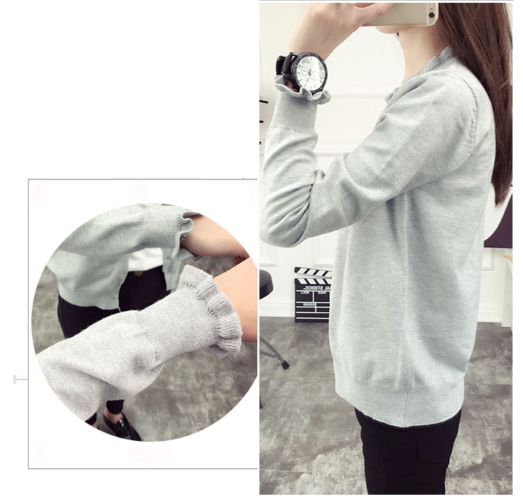 - Thiết kế áo form rộng, cổ bèo basic, tay dài và len dệt cơ bản trên áo đơn giản giúp bạn nữ thêm xinh xắn, duyên dáng khi bước xuống phố những ngày tiết trời se lạnh.