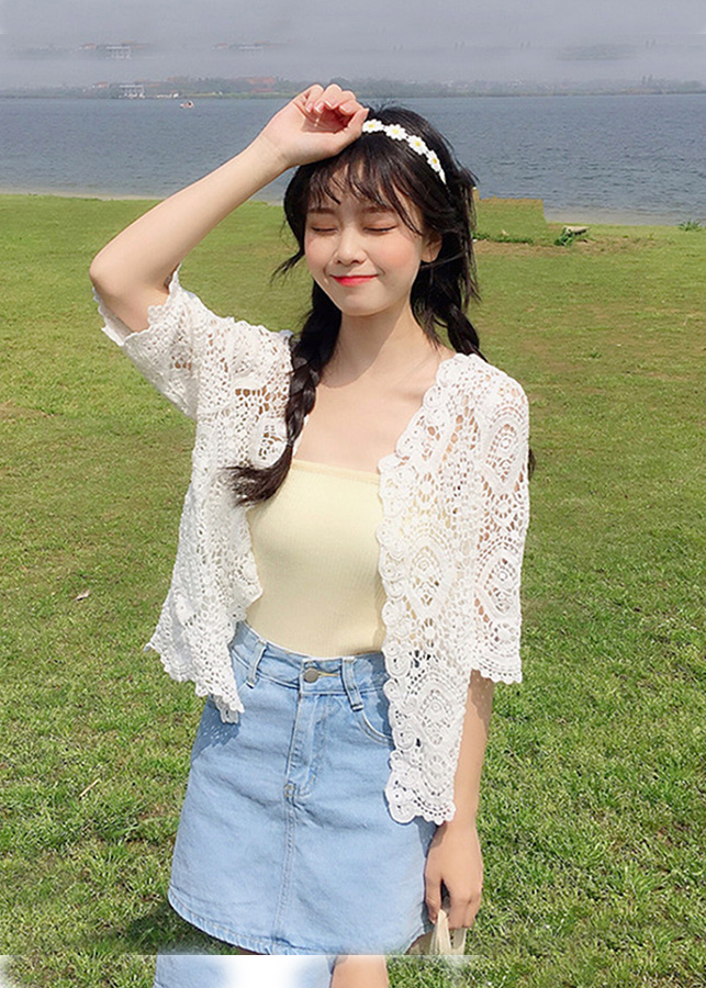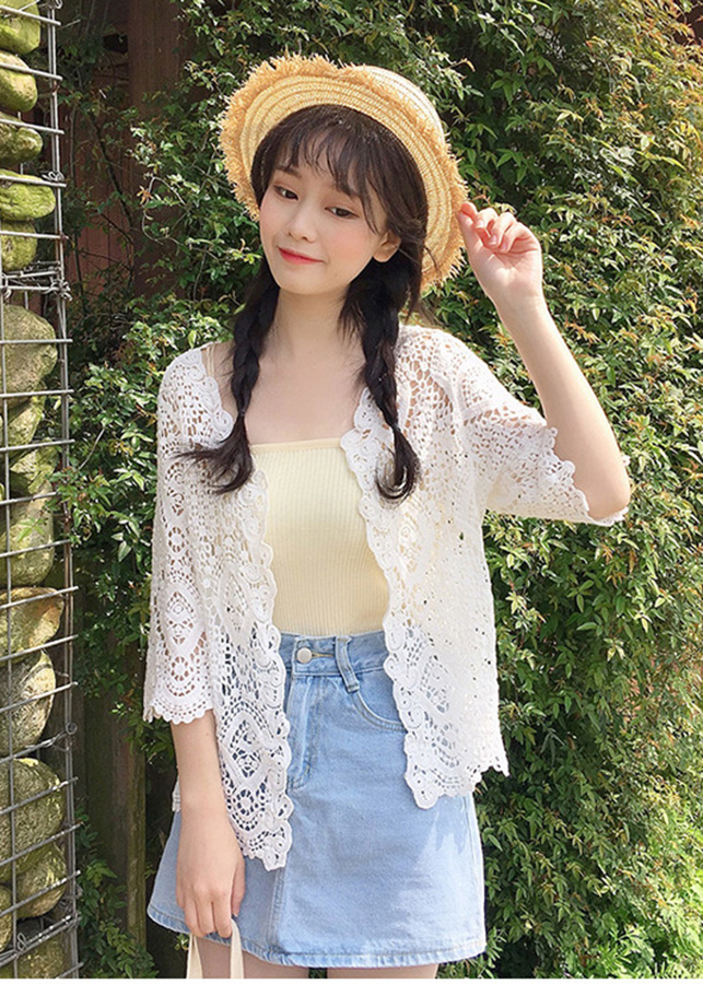 - Áo khoác nữ thiết kế mắt thưa tạo hình chấm tròn nhỏ kiểu dáng , điệu đà , xinh xắn