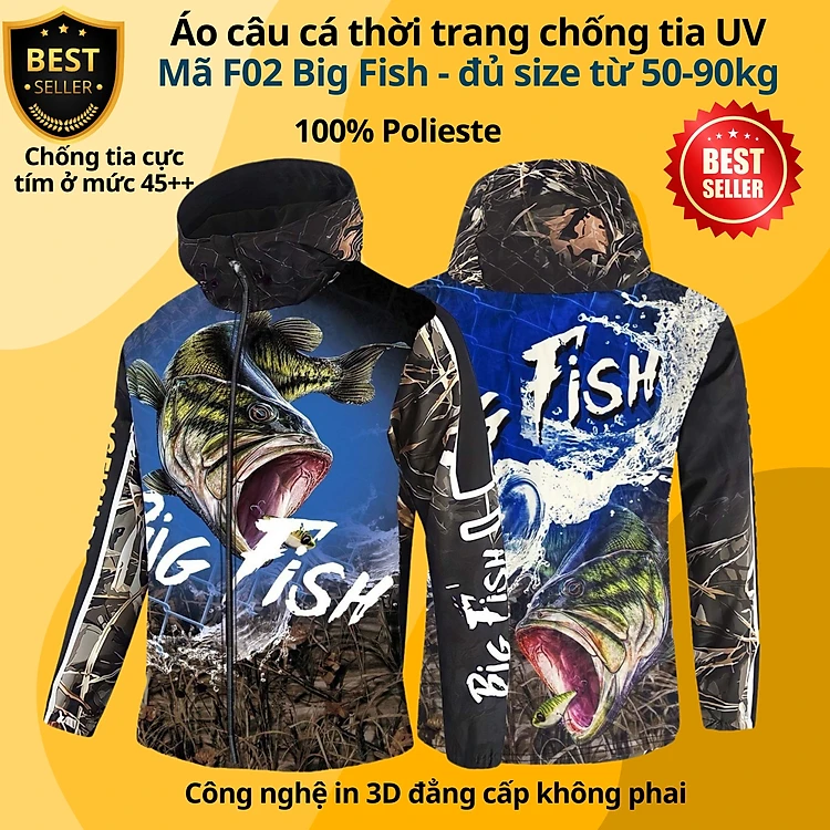 Áo câu cá thời trang chống nắng F05 Cá vàng F02 Big Fish đủ size từ 50-85kg - Áo đi câu chất liệu chống tia UV cao cấp D Danido