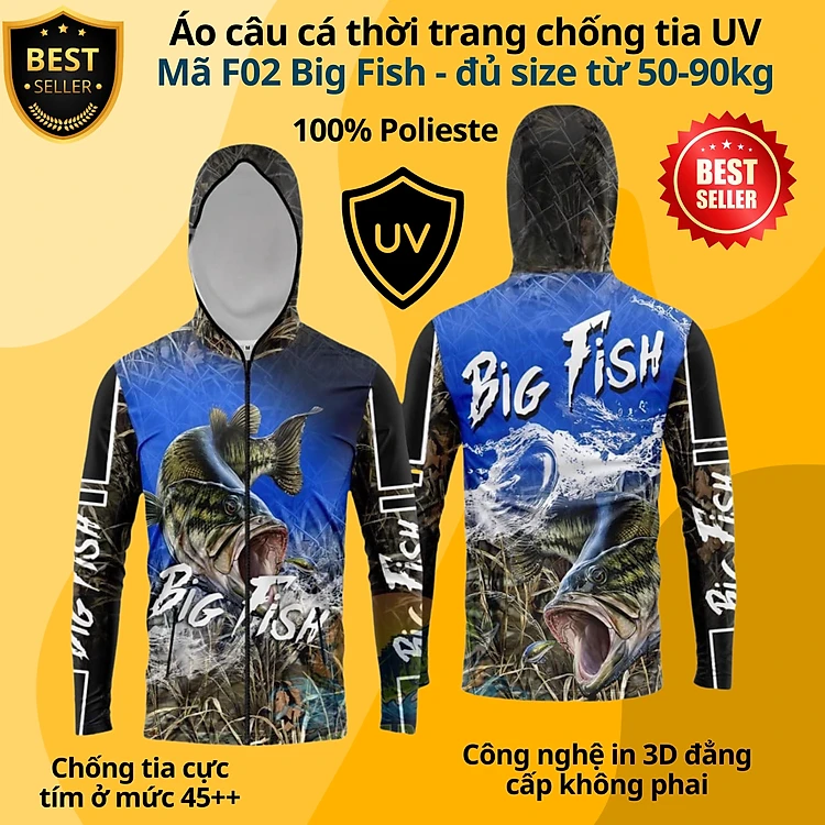 Áo câu cá thời trang chống nắng F05 Cá vàng F02 Big Fish đủ size từ 50-85kg - Áo đi câu chất liệu chống tia UV cao cấp D Danido