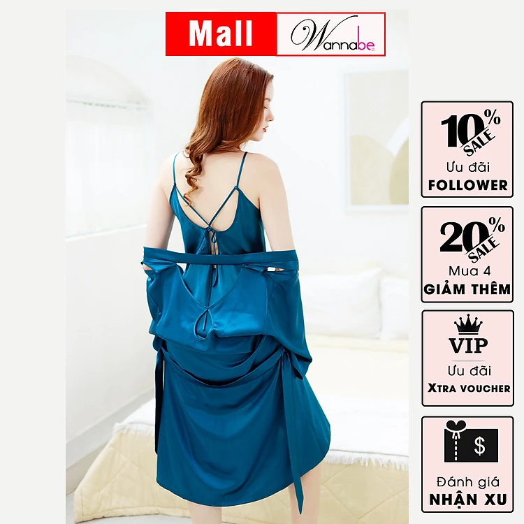 Áo choàng ngủ WANNABE KIS61 áo khoác ngủ dạng kimono khoét hình giọt nước ở vai lưng bắt mắt xinh xắn nữ tính