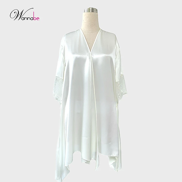 Áo choàng ngủ WANNABE KIS47 áo khoát ngủ dạng kimono tay áo phồi ren bản lớn, lai áo gợn sóng mang lại vẻ đẹp nhẹ nhàng