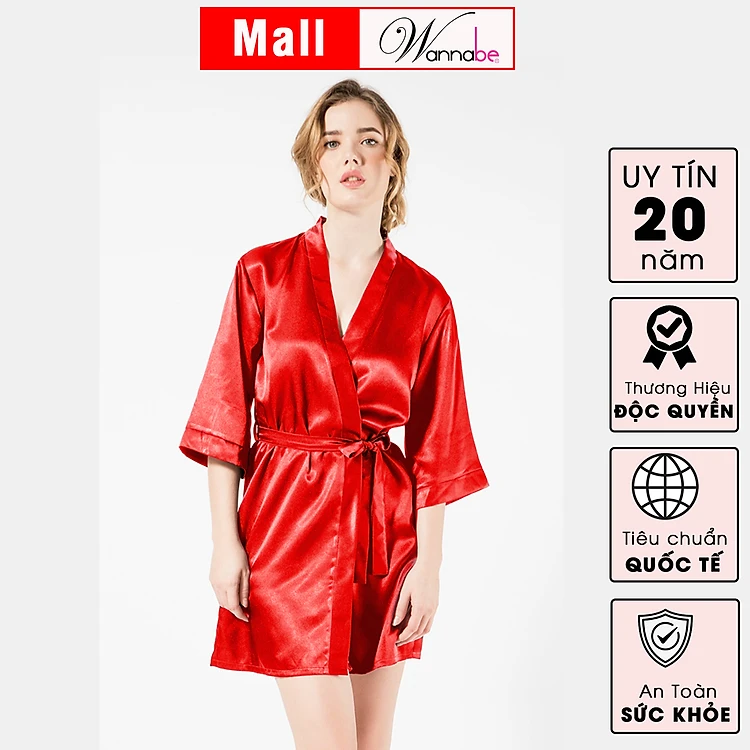 Áo choàng ngủ WANNABE KI010 áo khoác ngủ kimono dạng cơ bản trơn đơn giản dễ mặc sang trọng