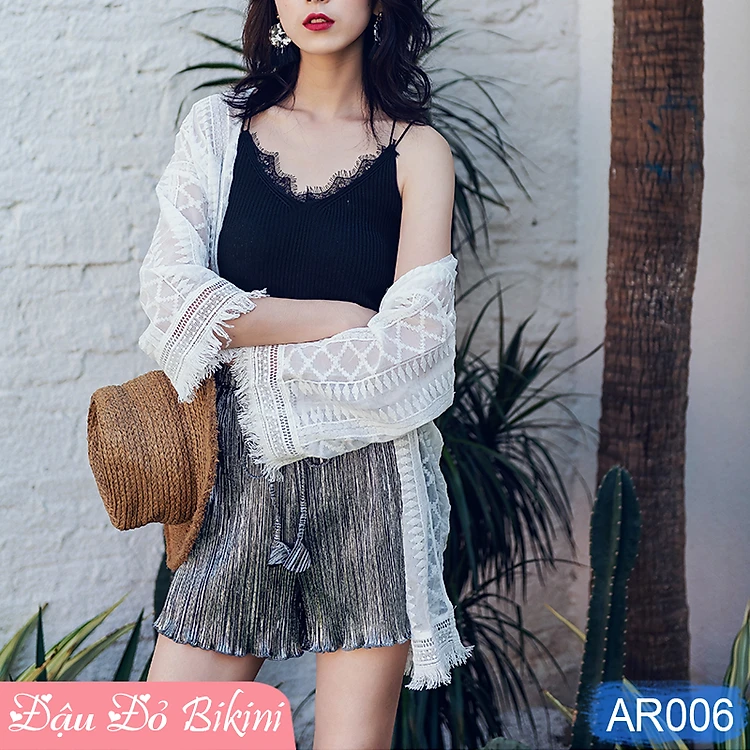 Áo choàng ren nữ dáng cardigan thanh lịch, dùng đi biển, du lịch, phối đồ cùng bikini, croptop, chất ren mềm mại, họa tiết nữ tính tinh tế | AR006