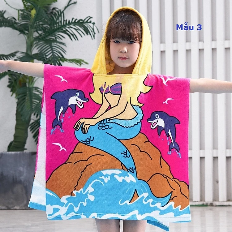 Áo choàng tắm trùm người có nón đi biển cho bé