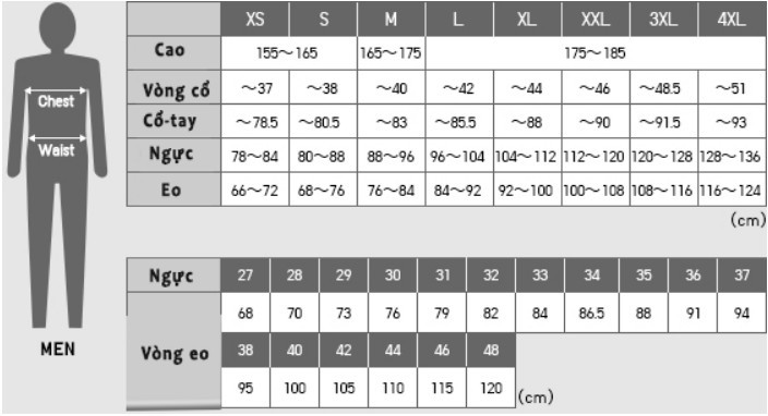 - Cách chọn size áo cho nam