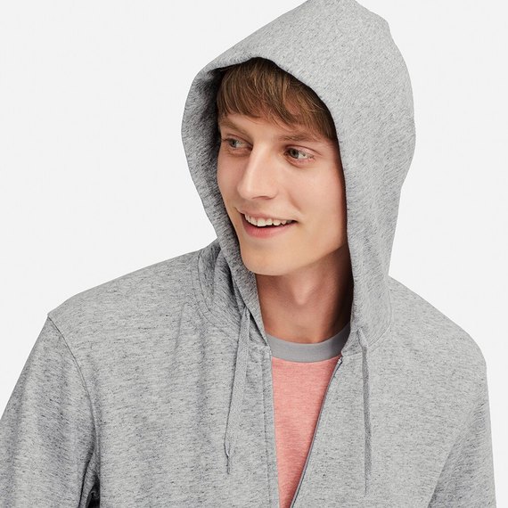 - Áo chống nắng nam Uniqlo loại kéo khoá, có mũ, có thể trùm mũ rộng ra ngoài mũ bảo hiểm, giúp che chắn cả tóc và gáy của bạn.