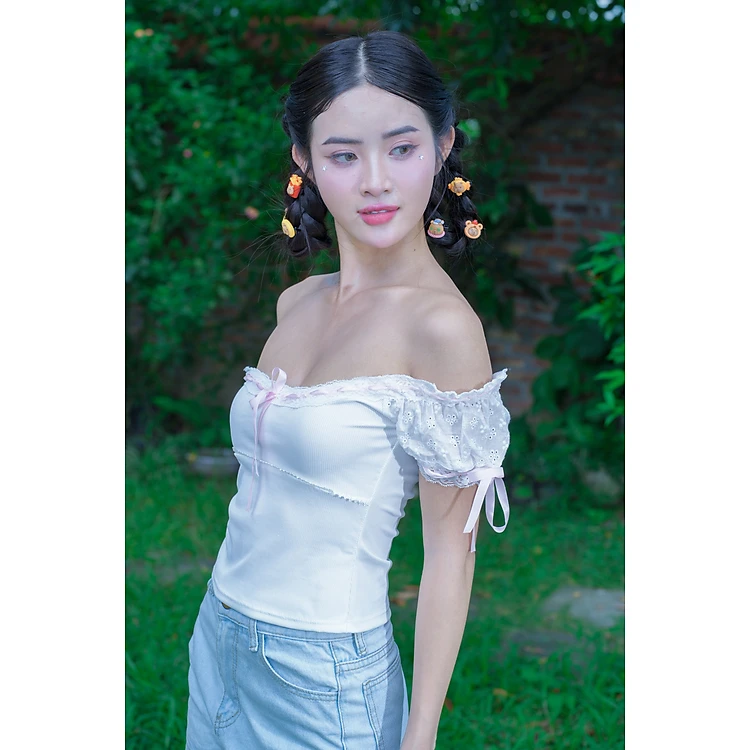 Áo coquette brandy white top- Áo trắng tăm lạnh phong cách coquette đính nơ siêu xinh