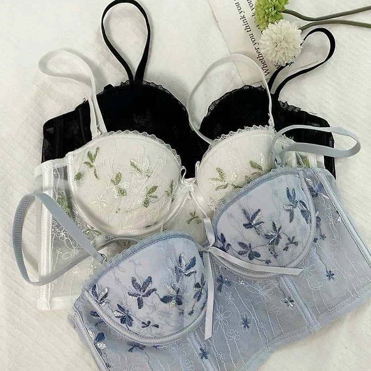 Áo corset không mút có gọng thêu hoa tỉ mỉ bản to che khuyết điểm