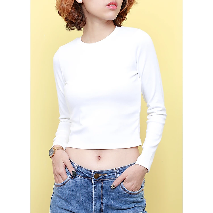 Áo Croptop Dài Tay Đơn Giản Xinh Xắn ACT700 - Trắng (Freesize (37-55kg))