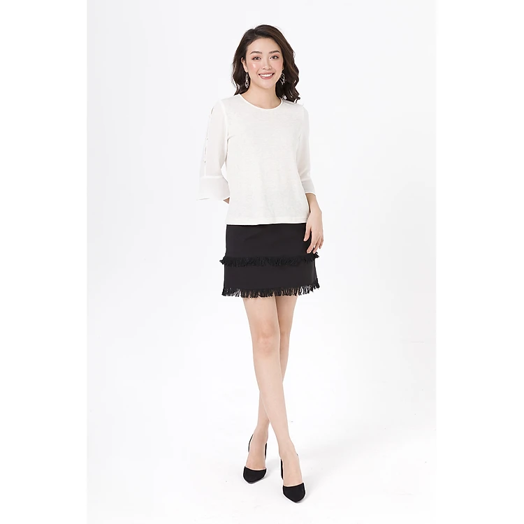- Thiết kế cổ tròn dáng suông, phối tay lỡ voan làm tăng thêm sự dịu dàng cho chiếc áo, thích hợp cho tiết trời chớm thu.Tay áo loe xẻ đính cúc tạo điểm nhấn. Áo dễ kết hợp với nhiều item mang đến nhiều phong cách khác nhau cho bạn gái thỏa sức mix and match.