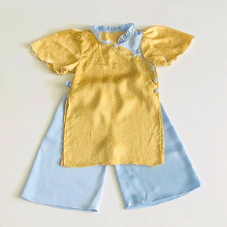 Áo dài bé gái Bi vàng lụa - AICDBGDWAOPQ - AIN Closet