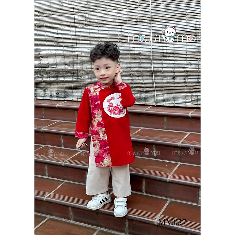 Áo dài cách tân bé trai, Áo tết cho bé 1-10 tuổi thêu rồng hàng thiết kế chất liệu nhung mềm mại kiểu dáng thời trang